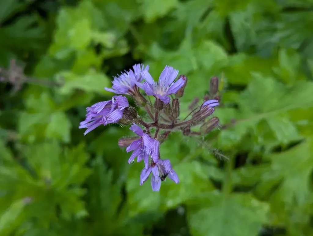 Alpine Blue Sow-thistle (Cicerbita Alpina) is a perennial herb in the Asteraceae family with moderate care difficulty. It requires moderate watering and full sun or partial shade light in USDA hardiness zones 4-7. This plant is safe for cats and dogs.