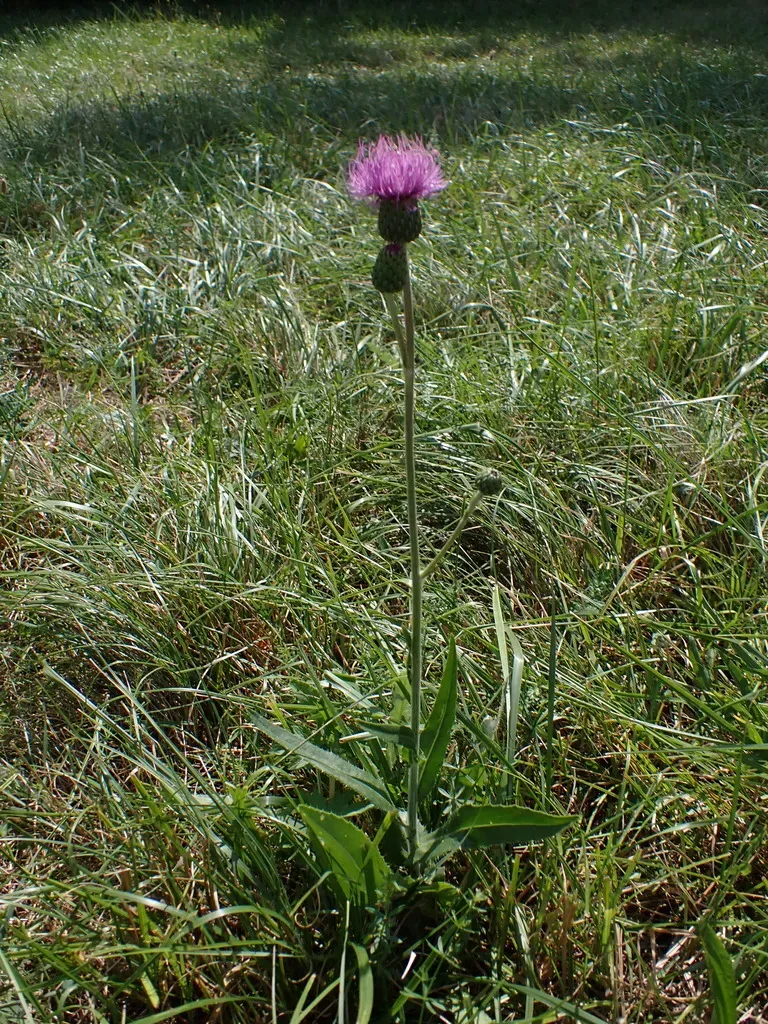 Cirsium canum, commonly known as Queen Anne's thistle, is a perennial herbaceous plant known for its architectural form and silver-green foliage with pink to purplish flowers.