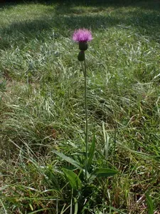 Queen Anne's Thistle (Cirsium Canum) is a perennial herb in the Asteraceae family with easy care difficulty. It requires moderate watering and full sun light in USDA hardiness zones 4-8. This plant is safe for cats and dogs.