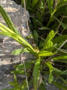 Cirsium monspessulanum is an erect perennial thistle native to the Mediterranean region, characterized by spiny, lance-shaped green leaves and purple flowers.
