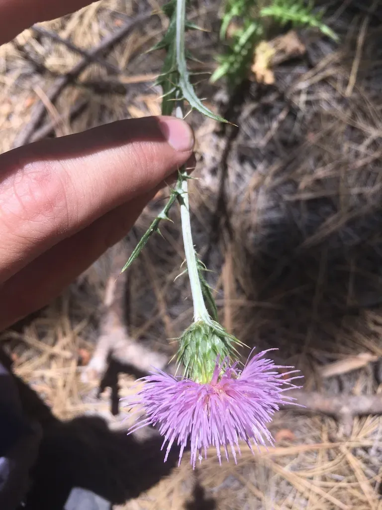 Cirsium ochrocentrum is a perennial thistle native to the southwestern United States, characterized by spiny leaves and yellowish to pinkish flower heads.