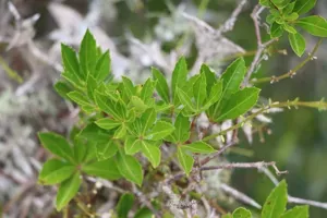 Cissus striata is a delicate, evergreen vine known for its climbing ability using tendrils, with red stems and glossy, palmate leaves.