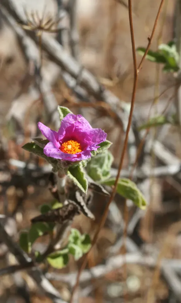 Cistus creticus is a shrubby evergreen plant native to the Mediterranean region, known for its attractive pink flowers and drought tolerance.