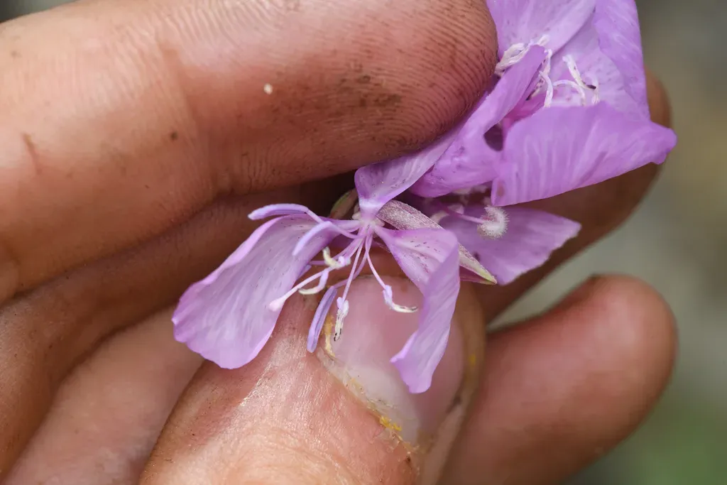 Clarkia dudleyana is an annual herbaceous wildflower endemic to California, known for its delicate, vibrant pink to magenta flowers and upright to sprawling habit.