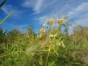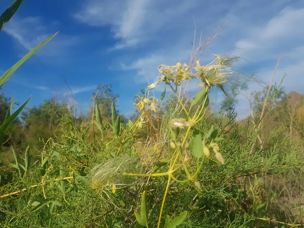 Clematis orientalis is a vigorous, deciduous climbing vine known for its bright yellow, lantern-shaped flowers and attractive seed heads.