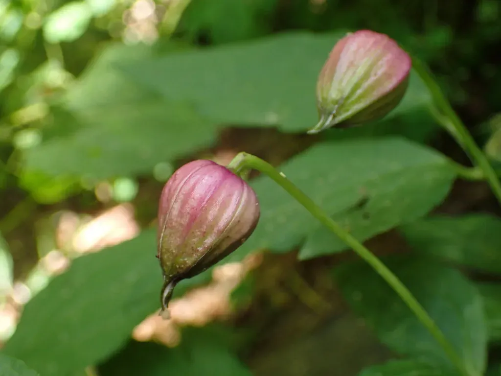 A perennial climbing vine with nodding, bell-shaped, violet to reddish-purple flowers.