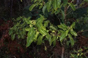 Clerodendrum floribundum is a shrub or small tree native to Australia and New Guinea, known for its attractive white tubular flowers and colorful purple fruits.