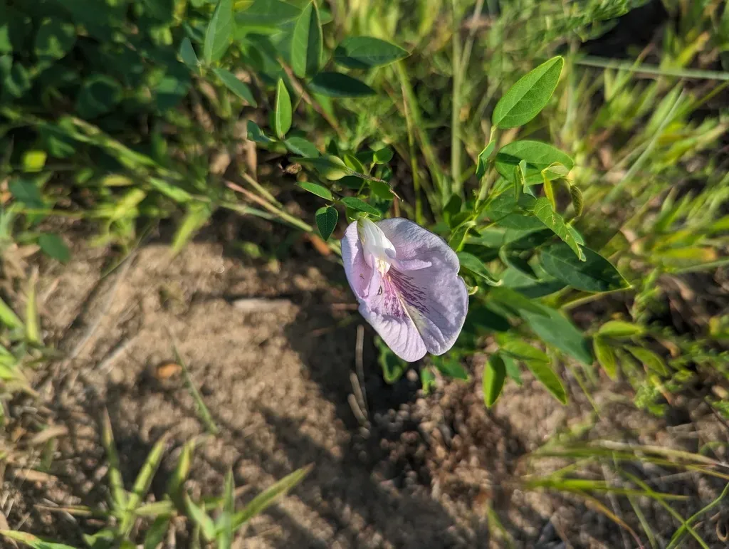 Butterfly Pea (Clitoria Mariana) is a perennial vine in the Fabaceae family with easy care difficulty. It requires moderate watering and full sun or partial shade light in USDA hardiness zones 6-9. This plant is safe for cats and dogs.