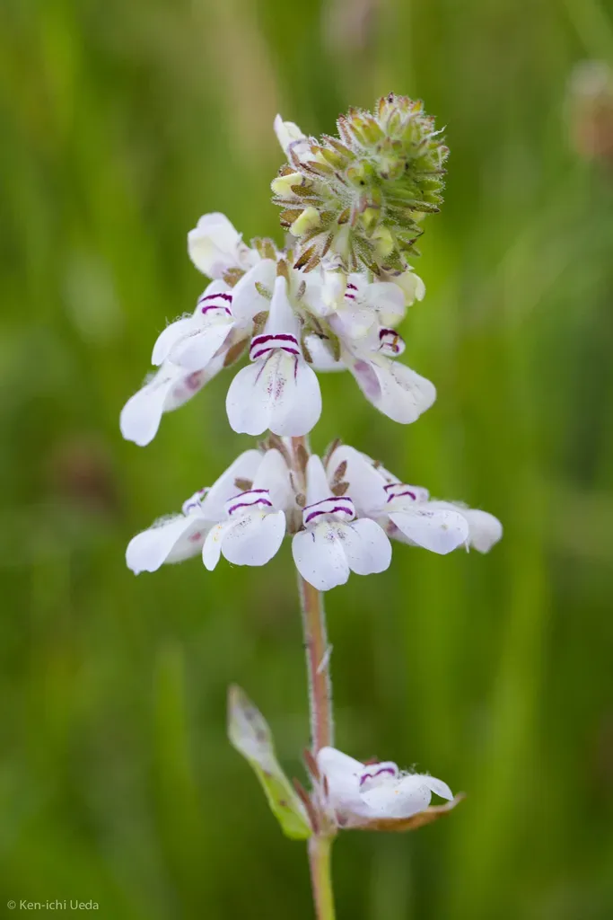 Collinsia tinctoria is a native annual herb endemic to California, known for its sturdy erect stems and distinctive flowers.