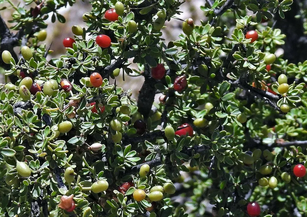 Piquillín (Condalia Microphylla) is a perennial shrub in the Rhamnaceae family with easy care difficulty. It requires low watering and full sun or partial shade light in USDA hardiness zones 9-11. This plant is safe for cats and dogs.