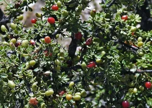 Condalia microphylla is a perennial shrub endemic to Argentina, belonging to the Rhamnaceae family.
