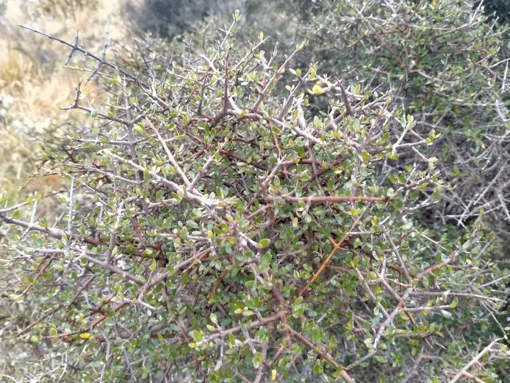 Coprosma propinqua is a small to medium evergreen shrub or tree native to New Zealand, growing up to 6 meters tall with divaricating branches and glossy dark green leaves.