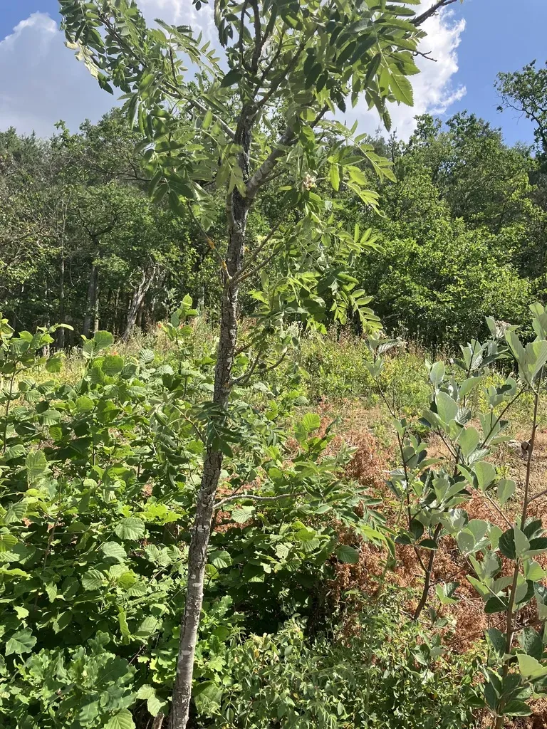 Cormus domestica is a deciduous tree native to Europe, known for its rough bark and edible fruit.