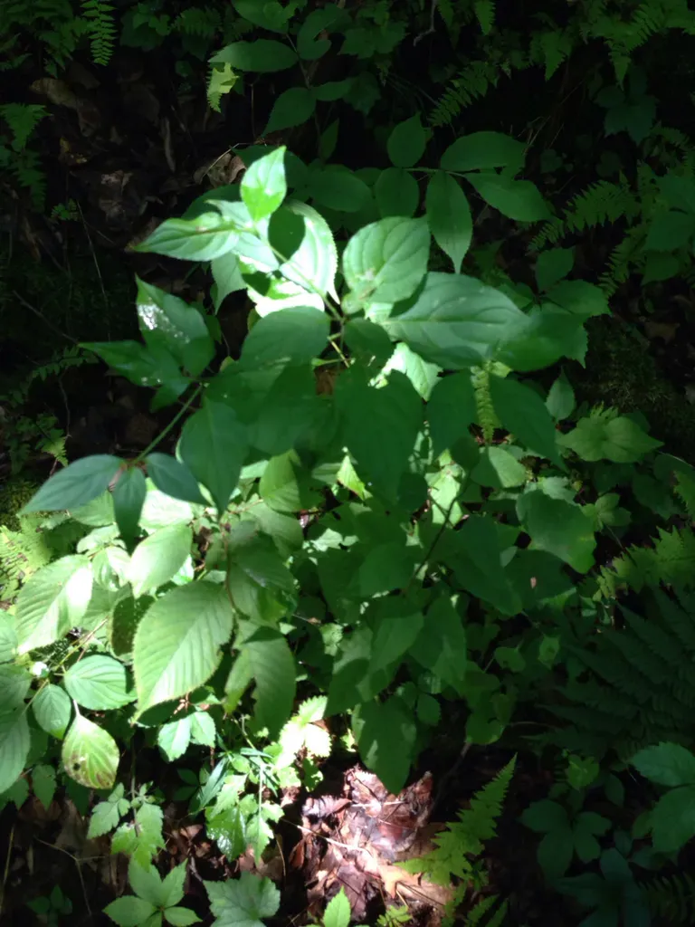 A deciduous shrub or small tree native to North America, known for its rounded leaves and clusters of white flowers in spring.