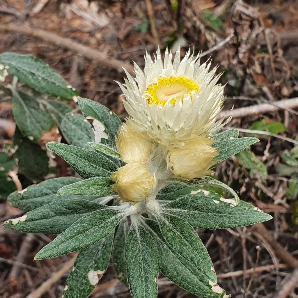 White Paper Daisy (Coronidium Elatum) is a perennial shrub in the Asteraceae family with easy care difficulty. It requires moderate watering and full sun or partial shade light in USDA hardiness zones 9-11. This plant is safe for cats and dogs.