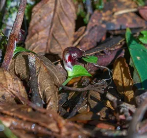 Veined Helmet-orchid (Corybas Diemenicus) is a perennial herb in the Orchidaceae family with moderate care difficulty. It requires moderate watering and partial shade or dappled_shade or filtered_light light in USDA hardiness zones 9-11. This plant is safe for cats and dogs.
