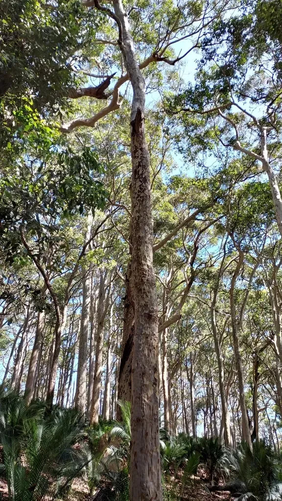 Corymbia maculata is a medium to tall evergreen tree native to eastern Australia, known for its smooth, mottled bark and lance-shaped leaves.
