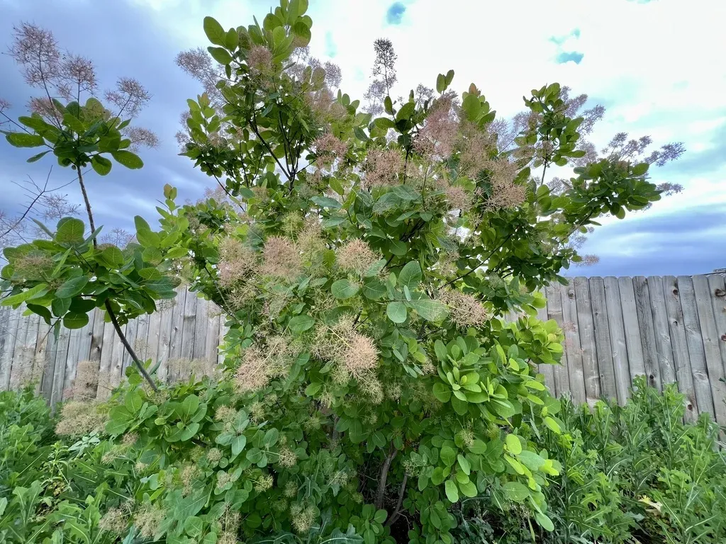 A deciduous small tree or large shrub known for its striking smoke-like flower clusters and vibrant fall foliage.