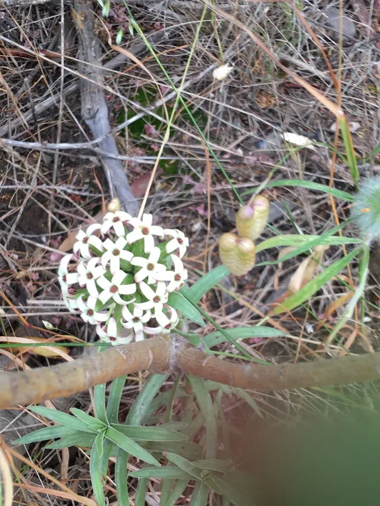 Crassula fascicularis is an erect, succulent shrublet, typically 15-40 cm high, branching from a slightly woody base with fleshy, tightly clustered leaves forming rosettes.