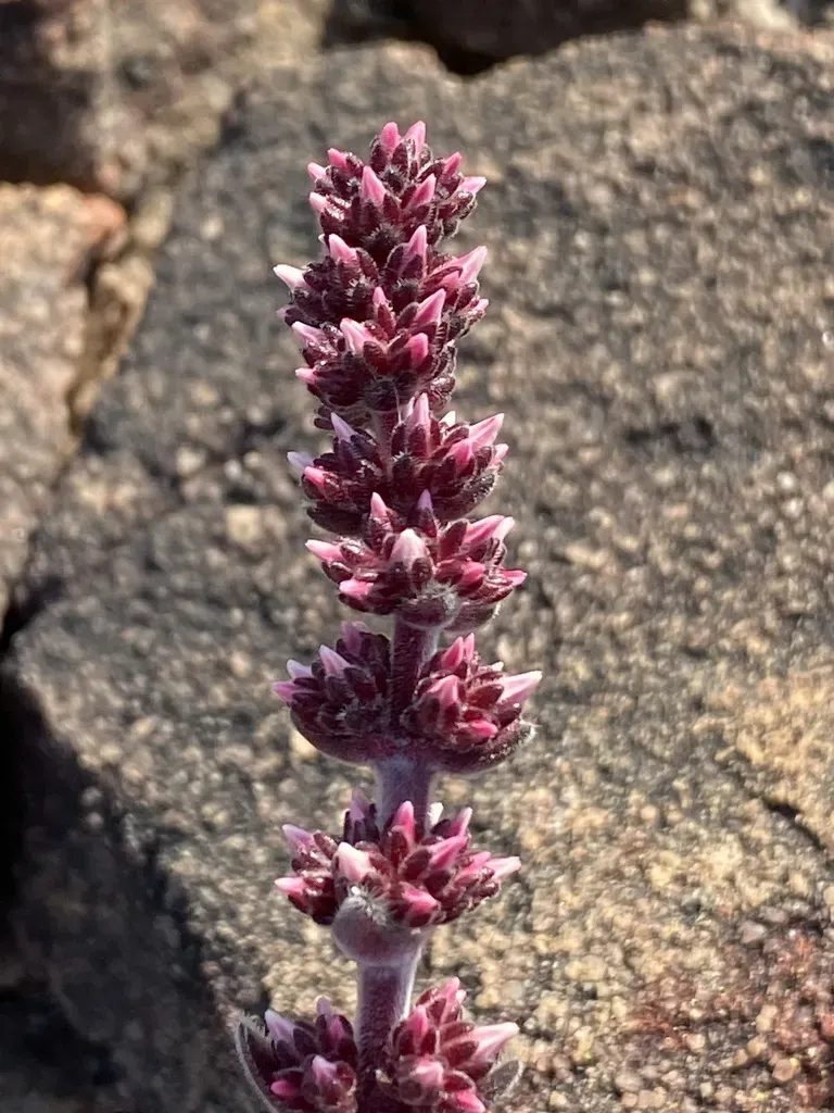 Crassula tomentosa is a perennial or biennial succulent forming compact rosettes of grayish-green, densely hairy leaves.