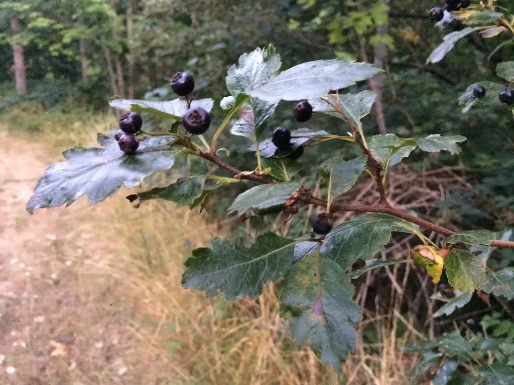 Crataegus douglasii is a deciduous broadleaf shrub or small tree native to the Pacific Northwest, known for its white flowers and black to purple fruits.