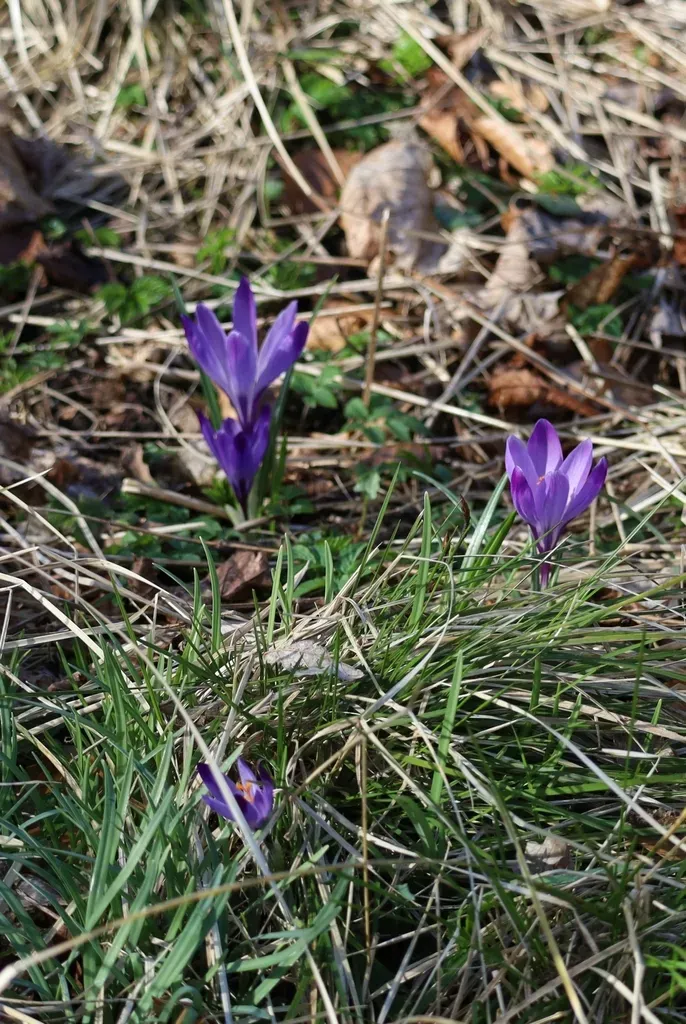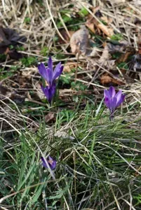 Crocus neapolitanus is a small, slender crocus species with deep purple flowers that bloom early in spring.