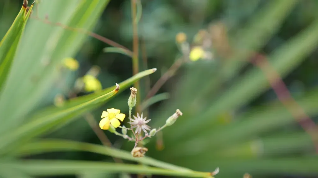 Croptilon divaricatum, commonly known as slender scratchdaisy, is an annual or perennial herb native to parts of North America, characterized by its lanceolate leaves and yellow daisy-like flowers.