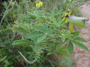 Bushy Rattlepod (Crotalaria Grahamiana) is a plant in the Fabaceae family with moderate care difficulty. It requires moderate watering and moderate light.