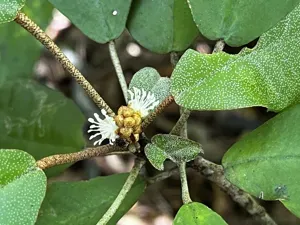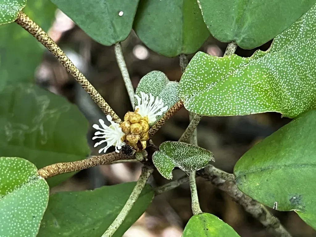 Croton cascarilloides is a shrub native to tropical regions, growing between 50 cm to 5 meters tall with unisexual flowers and capsule fruits.