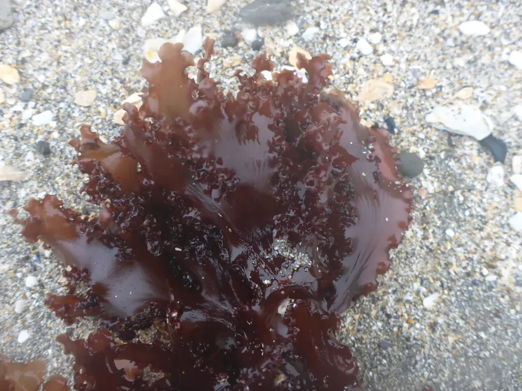 Cryptopleura ruprechtiana is a bright to deep red marine alga with a flattened, erect thallus divided into many lobes.