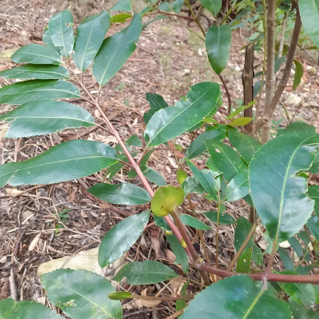 Cunonia capensis is an evergreen tree native to South Africa, known for its glossy, serrated dark green leaves with contrasting reddish leaf stalks and dense, creamy, scented flowers appearing in late summer.