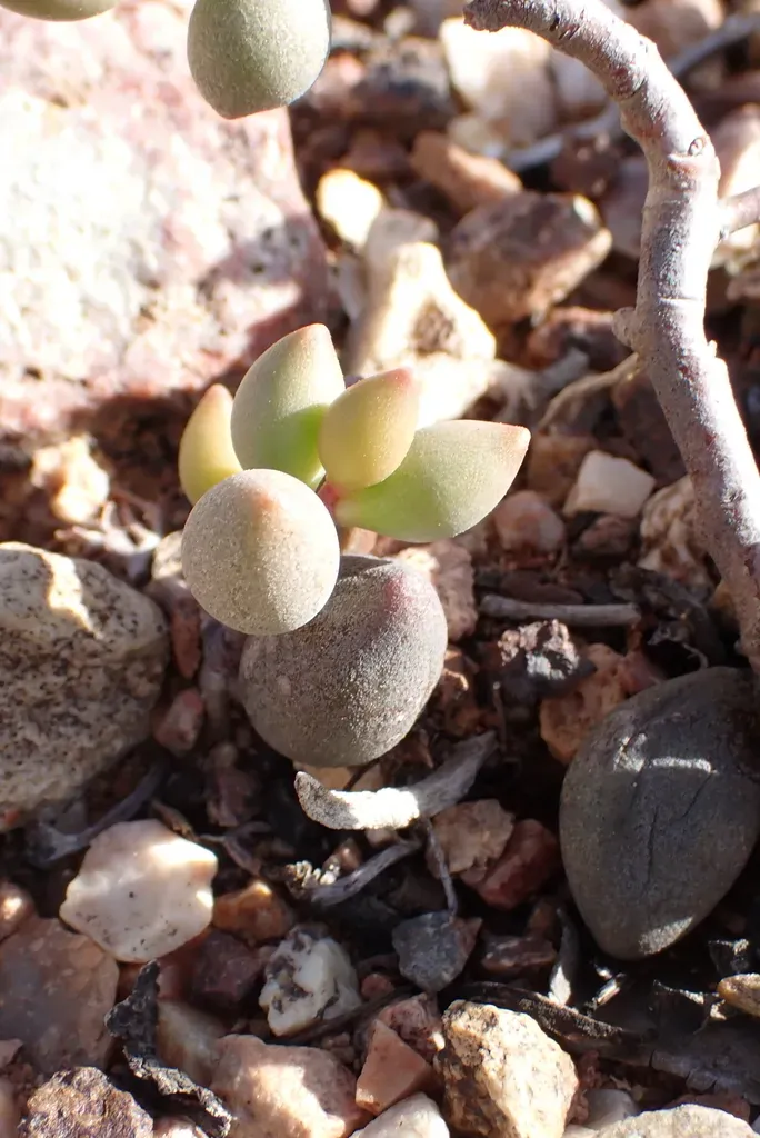 A trailing, herbaceous, succulent perennial vine with distinctive banana-shaped leaves.
