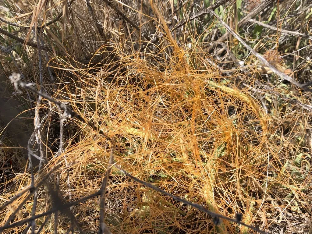 Cuscuta californica is a parasitic vine native to California and western North America, known for its threadlike orange stems that twine around host plants to extract nutrients.