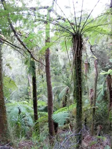 Cyathea cunninghamii is a tall, slender tree fern native to Australia, typically found in deep fern gullies and moist forest environments.