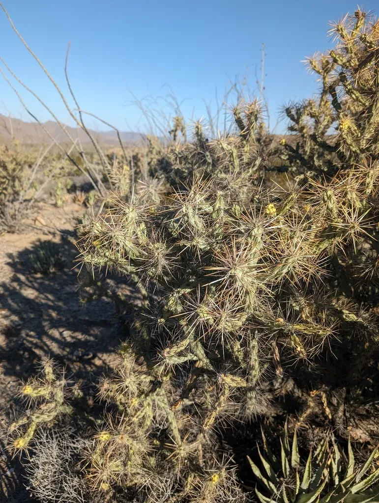Cylindropuntia molesta is a cactus species endemic to Baja California, Mexico, known for its jointed cylindrical stems and barbed spines.
