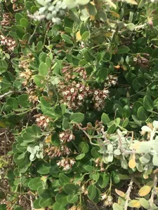 A perennial climbing subshrub native to southern Africa, with coriaceous ovate leaves and twining stems.