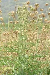 Syrian Wild Artichoke (Cynara Syriaca) is a plant in the Asteraceae family with moderate care difficulty. It requires moderate watering and moderate light.
