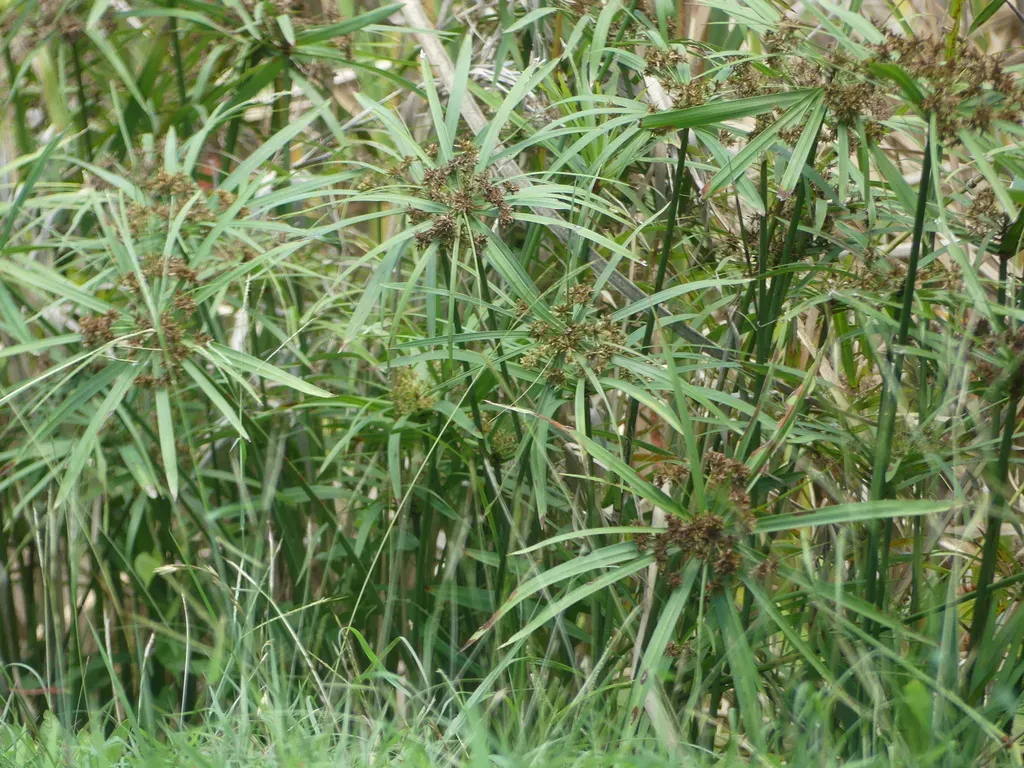 Cyperus alternifolius is a perennial, grass-like aquatic plant known for its distinctive umbrella-shaped whorls of leaves atop tall, slender stems.