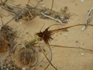 Cyperus capitatus is a species of sedge native to coastal regions of the Mediterranean and nearby areas, characterized by dense head-like flower clusters and spreading by scaly underground roots.
