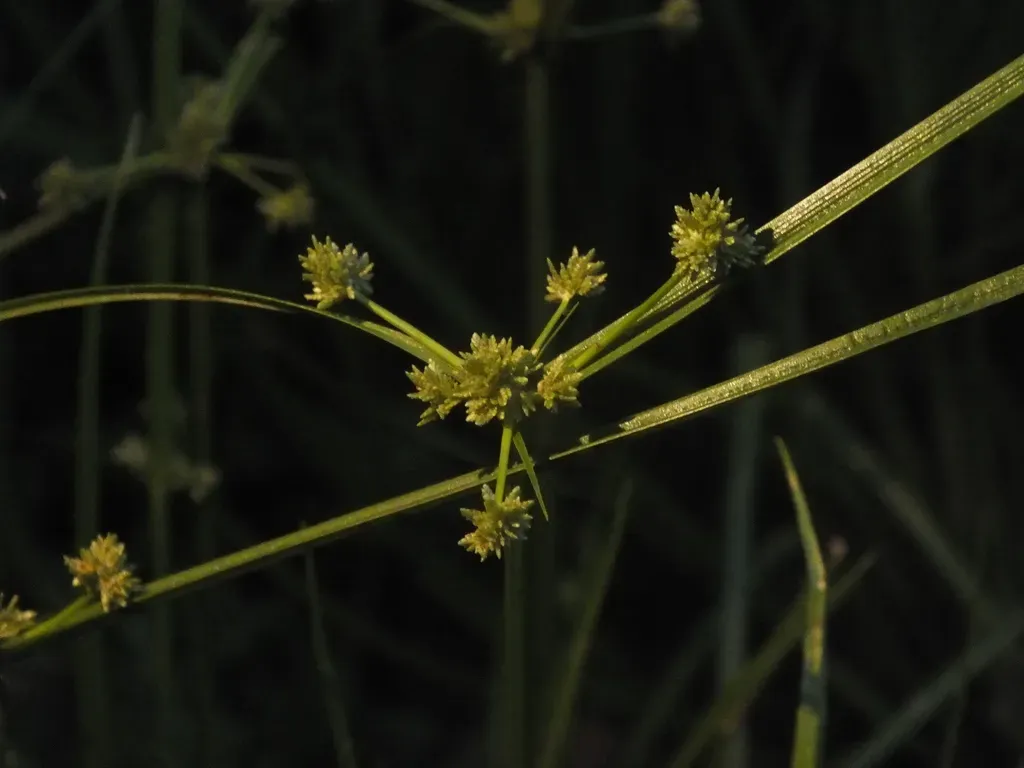 Cyperus difformis is an annual aquatic sedge commonly found in rice paddies and moist habitats, characterized by its tufted, erect, triangular stems and fibrous roots.