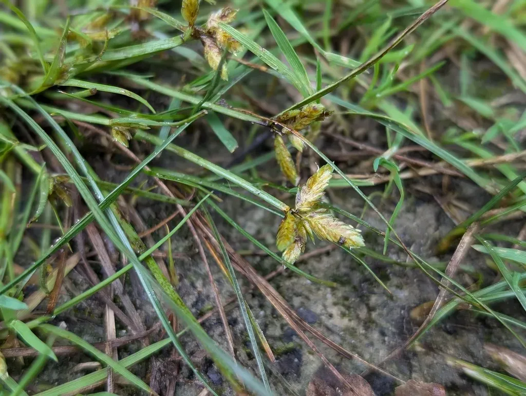 Cyperus flavescens is a small annual sedge commonly found in moist to wet, disturbed habitats.