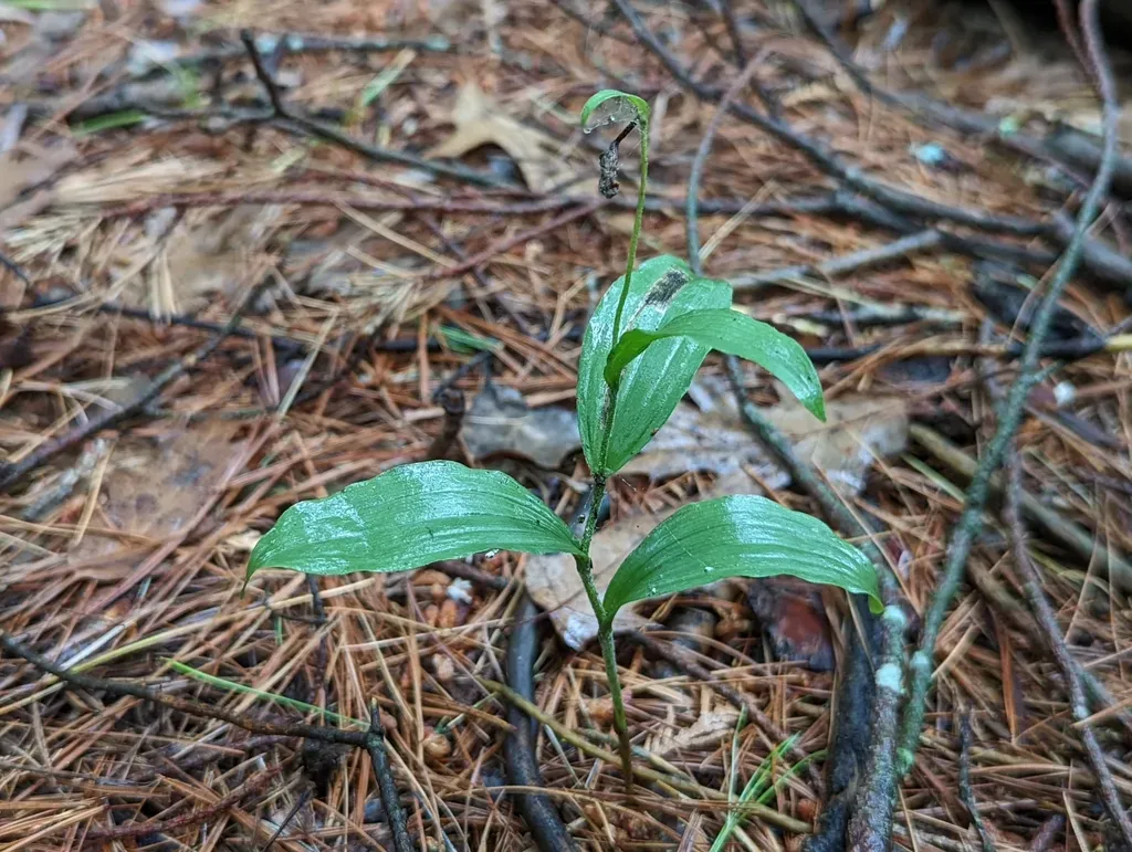 A rare, small terrestrial orchid with a distinctive ram’s-head-shaped pouch and crimson veining.