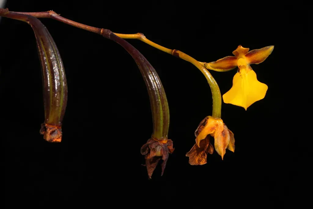 Cyrtochilum aureum is an epiphytic orchid species known for its bright golden-yellow flowers, native to South America, particularly Peru and Bolivia.