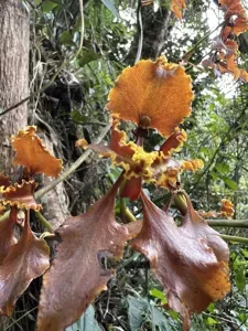 Cyrtochilum serratum is a large-sized orchid species native to montane cloud forests of western Ecuador and Peru, known for its very long inflorescences and vibrant flowers.