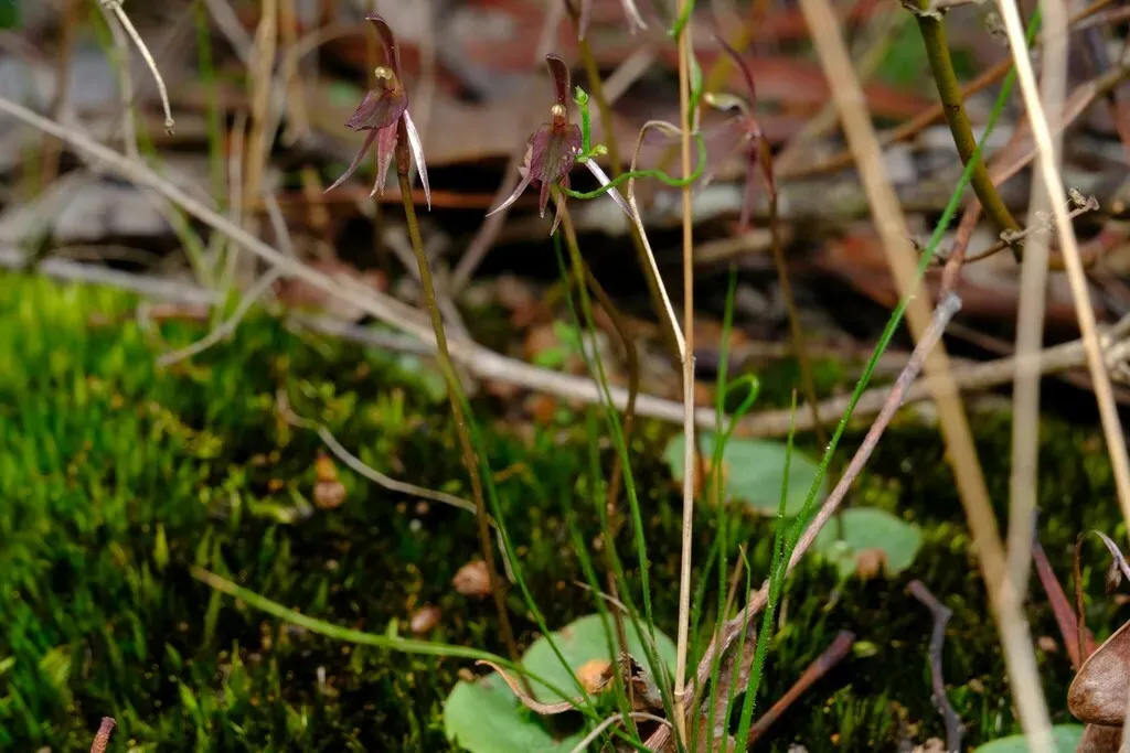 Common Gnat-orchid (Cyrtostylis Reniformis) is a perennial herb in the Orchidaceae family with moderate care difficulty. It requires moderate watering and partial shade or dappled_shade or filtered_light light in USDA hardiness zones 8-11. This plant is safe for cats and dogs. It can be grown indoors.