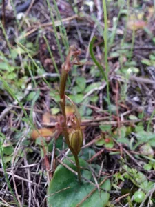 Cyrtostylis robusta is a terrestrial orchid species native to southern Australia, recognized for its pale reddish buds and larger, wavy-margined flowers.