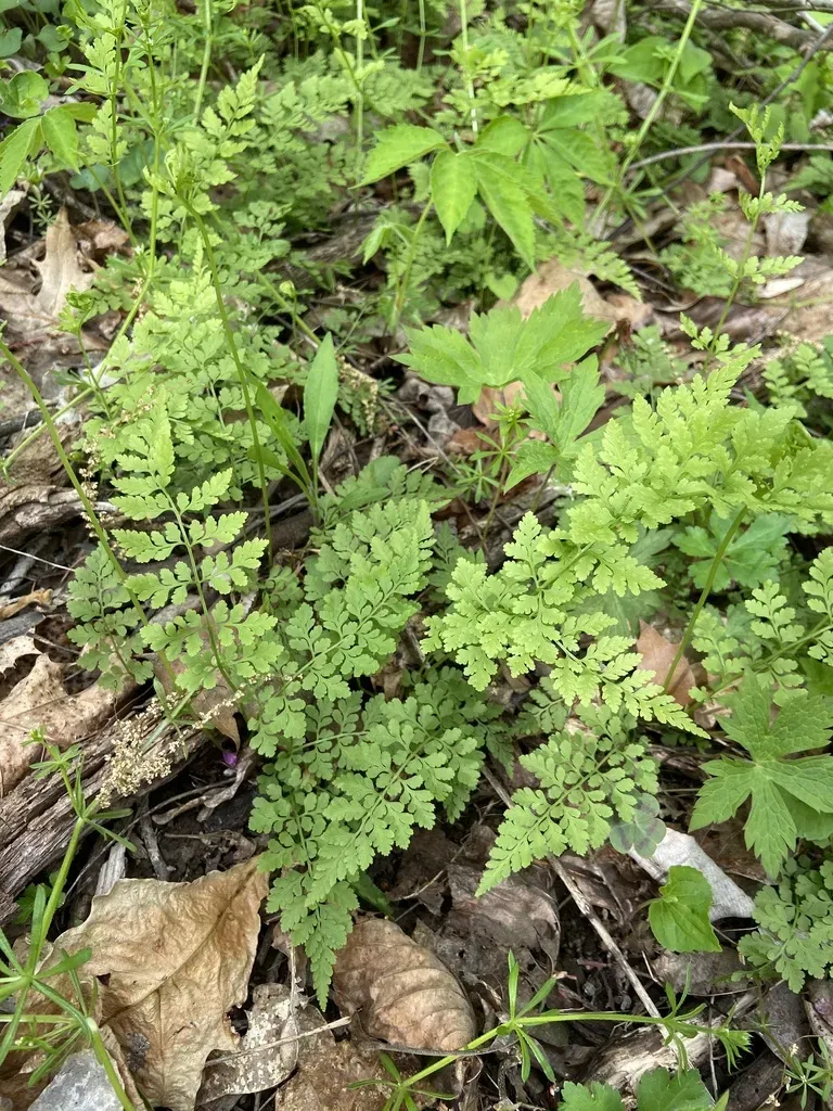 Southern Fragile Fern (Cystopteris Protrusa) is a perennial fern in the Aspleniaceae family with easy care difficulty. It requires moderate watering and partial shade or full shade or dappled_shade light in USDA hardiness zones 4-9. This plant is safe for cats and dogs.