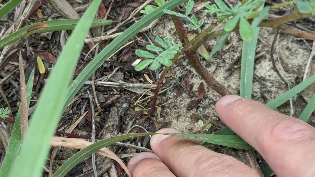 Dalea emarginata is an annual herbaceous plant with a taproot, belonging to the Fabaceae family. It is native to sandy soils and coastal dunes, primarily found from Louisiana to eastern Mexico.