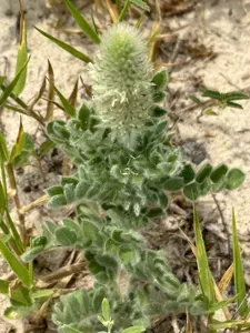 Pussyfoot (Dalea Obovata) is a perennial herb in the Fabaceae family with easy care difficulty. It requires drought-tolerant watering and full sun or partial shade light in USDA hardiness zones 7-9. This plant is safe for cats and dogs.