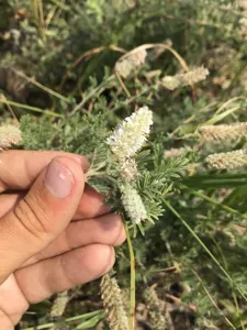 Dalea villosa, known as Silky Prairie Clover, is a native perennial legume with cylindrical spikes of tiny flowers featuring long pale yellow-tipped stamens.